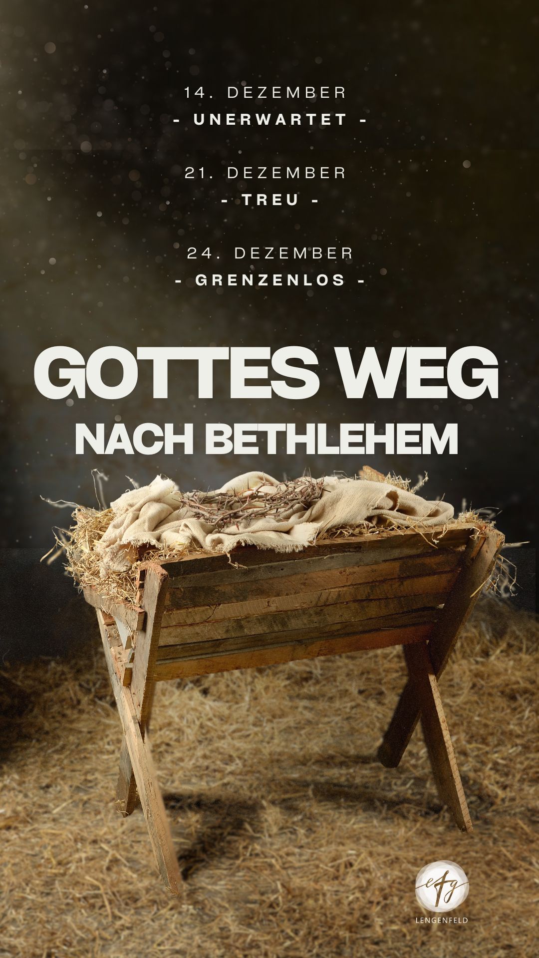 Weihnachten da ist. Deshalb wollen wir uns in unseren Gottesdiensten in der Adventszeit bewusst auf Weihnachten fokussieren. Wir wollen uns „Gottes Weg nach Bethlehem“ an