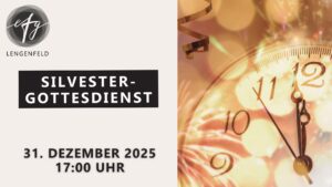 Am Silvesterabend findet um 17:00 Uhr unser Jahresabschlussgottesdienst statt. Sei gerne mit dabei. Wir freuen uns auf dich!